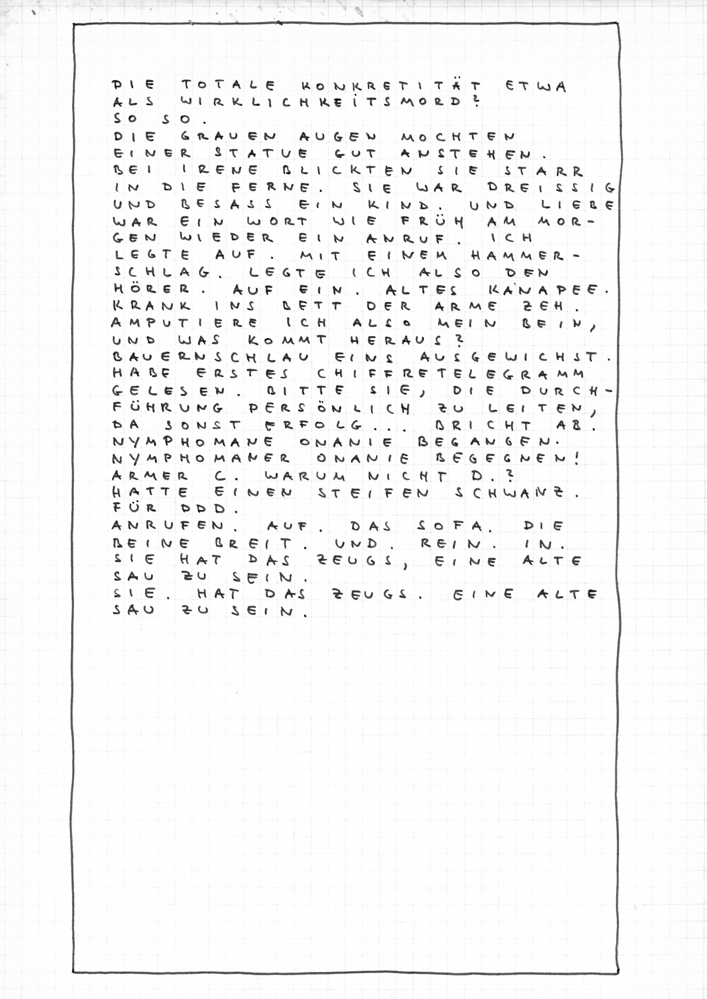 (20 zum Teil signierte Exemplare 1971, Nachdruck in Henry 6, Hamburg 1978)