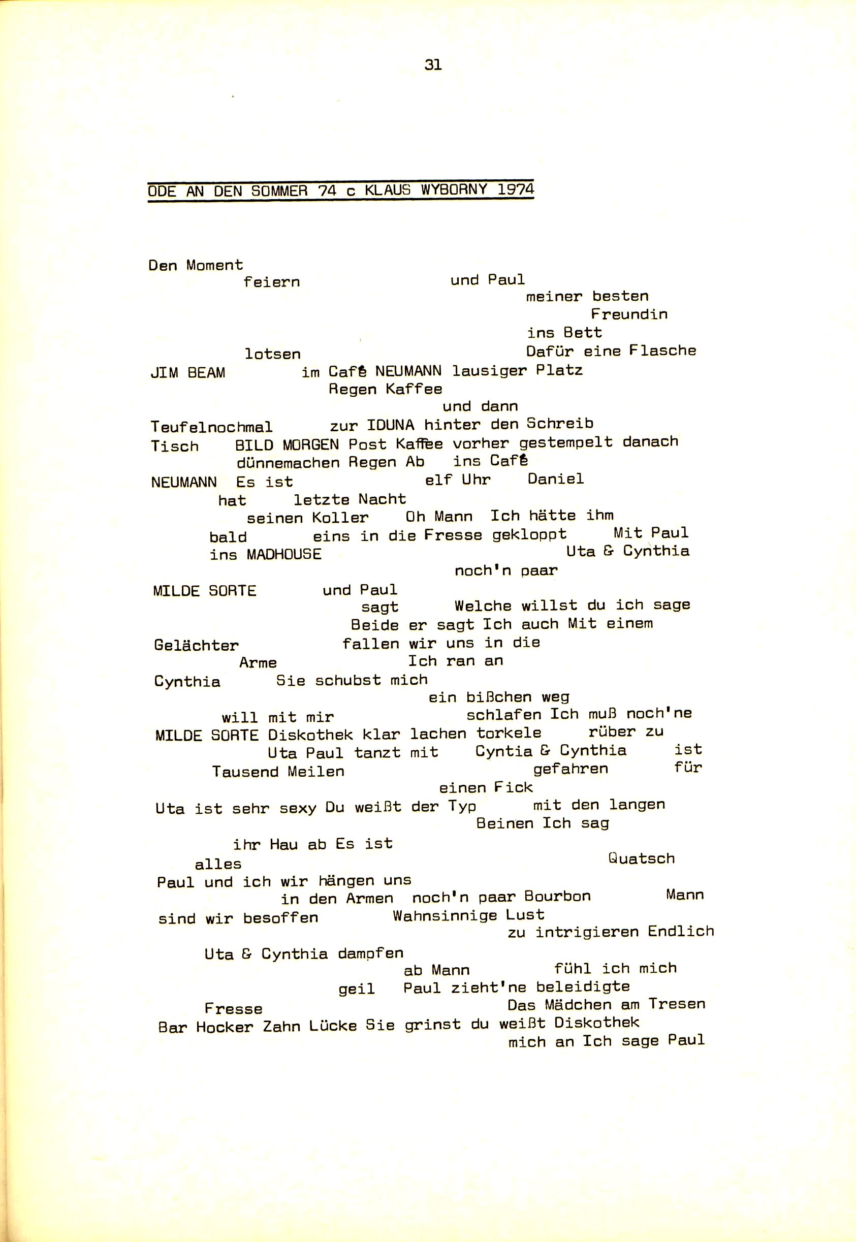 (veröffentlicht in Boa Vista 1, Hamburg 1974)